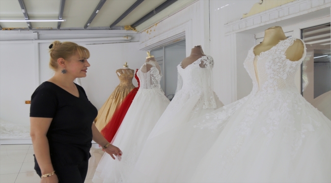 Aksaray'da dikilen gelinlikler Avrupa'daki gurbetçi genç kızların hayallerini süslüyor