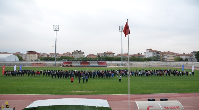 Karaman protokolü de İstiklal Marşı okuma etkinliğine Kemal Kaynaş Stadyumu'ndan iştirak etti.
