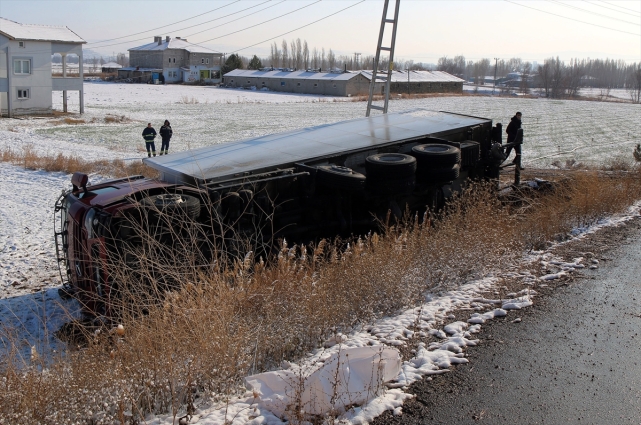 Öte yandan N.Y. (62) idaresindeki 58 ADR 455 plakalı tır, Sağır Mahallesi hemzemin geçidi yakınlarında devrildi.